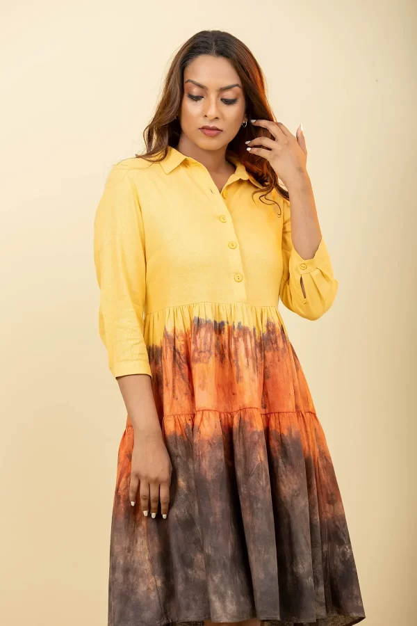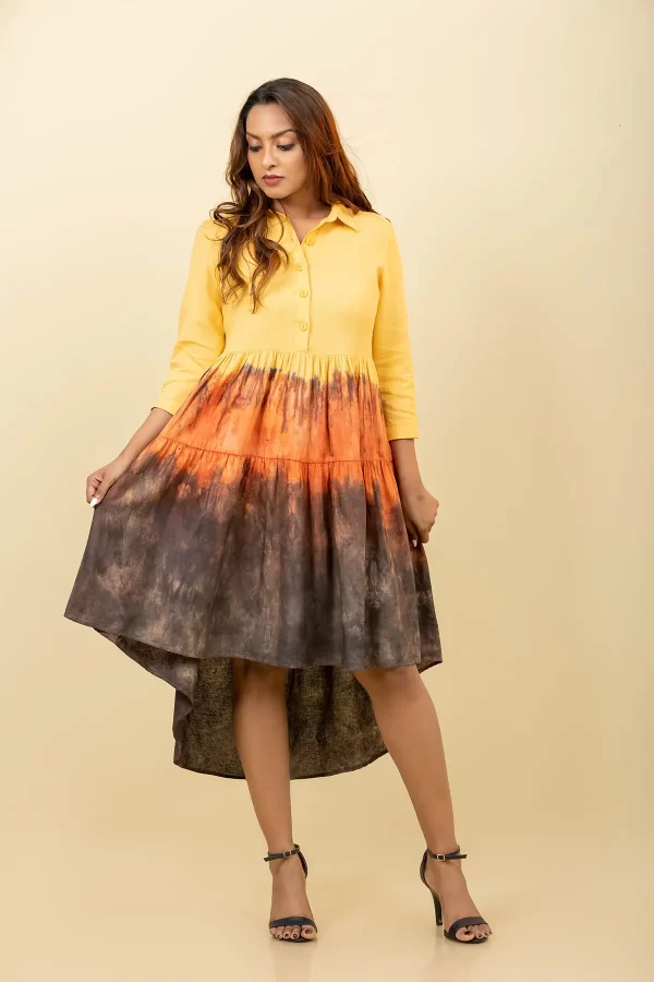 Tie Dye Bizzard Scarlet Yellow Dress Colors Yellow and Brown Shades Fabric Cotton 100% handmade in Sri Lanka.