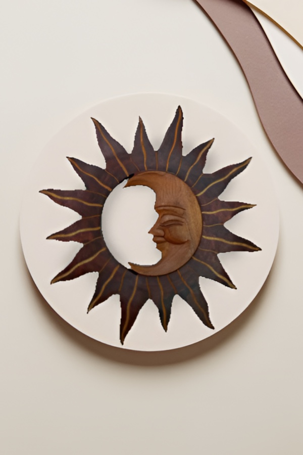 Wooden Carved Sun & Moon Wall Hang
